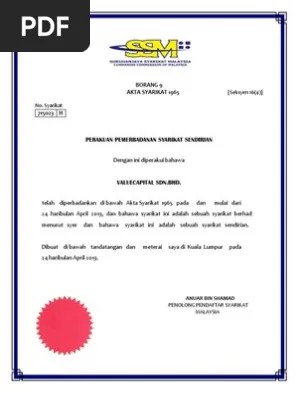 ( ) borang b / form b (bagi pendaftaran . Upon the approval of your company incorporation, the ssm will inform the person who submitted the . Bagi mendapat jumah saham terkini boleh buat company search di ssm. Syarikat akan memakai borang 9, 24, 49 & memorandum of association.
